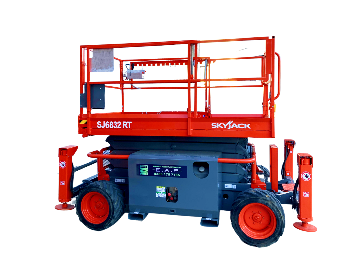 Skyjack rough terrain scissor lifts boast impressive platform capacities and industry-leading gradeability (up to 50%). With crossover symmetrical four-wheel drive, these machines deliver maximum torque to all wheels for superior all terrain performance.